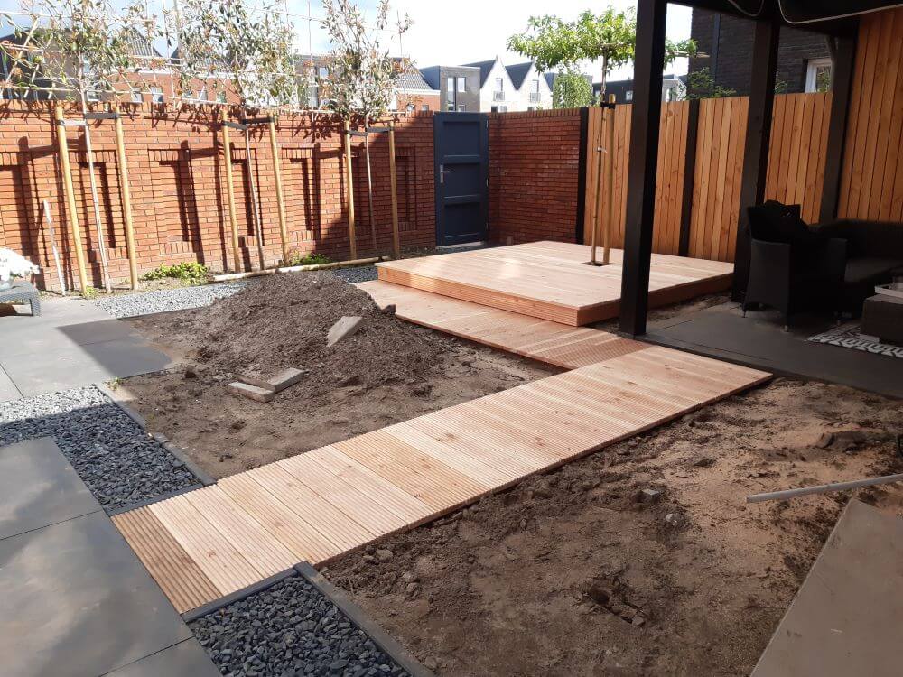 Constructie van een Douglas vlonder, perfect passend bij de overkapping