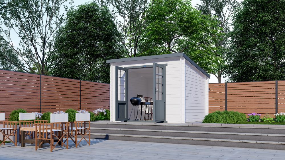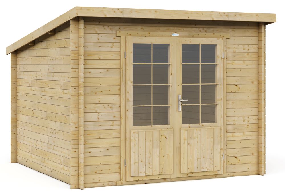 De Interflex blokhut 3030L is een compacte en stijlvolle tuinberging, perfect geschikt voor de kleinere tuin. Het moderne lessenaarsdak zorgt voor een strakke uitstraling en geeft uw tuin een eigentijdse sfeer.