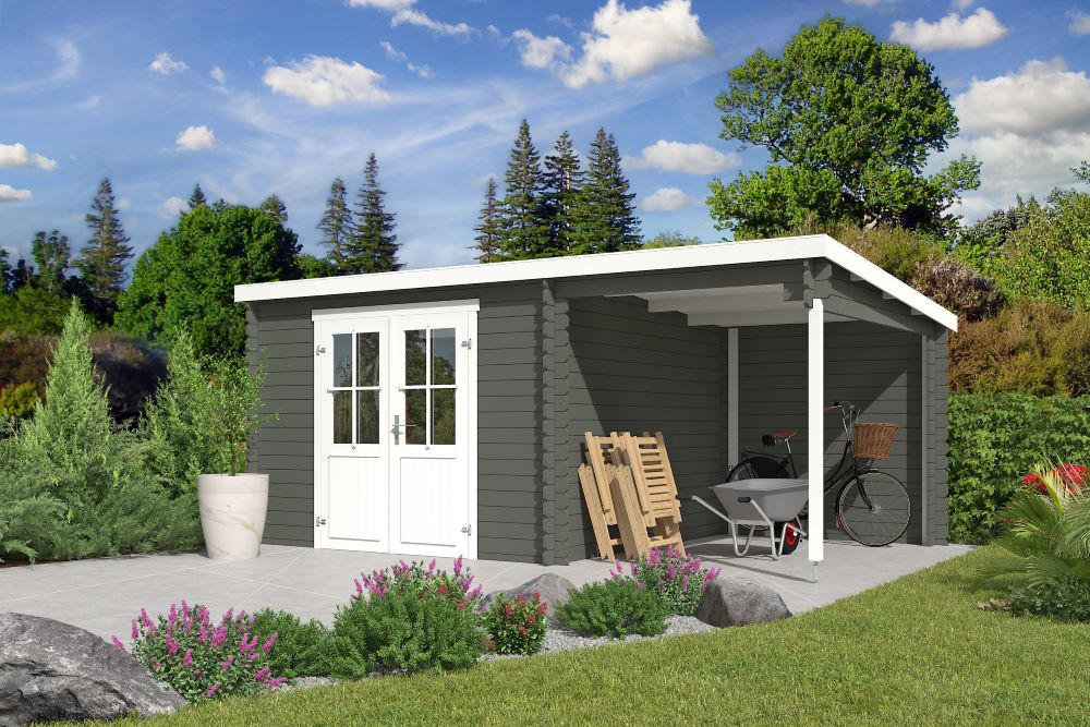 De dubbele deur maakt het gemakkelijk om grotere tuinspullen op te bergen, terwijl de aangrenzende overkapping een beschutte plek biedt om te ontspannen – perfect voor zomerse avonden. Het tuinhuis wordt geleverd als compleet bouwpakket inclusief duidelijke montagehandleiding, onderdelenlijst en al het benodigde bevestigingsmateriaal, waaronder het deurbeslag.